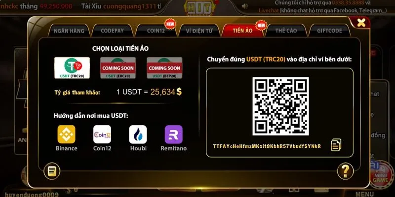 - Các phương thức nạp tiền mà cổng game cung cấp, chẳng hạn như chuyển khoản ngân hàng, quét mã QR, sử dụng ví điện tử hay nhiều phương tiện khác.